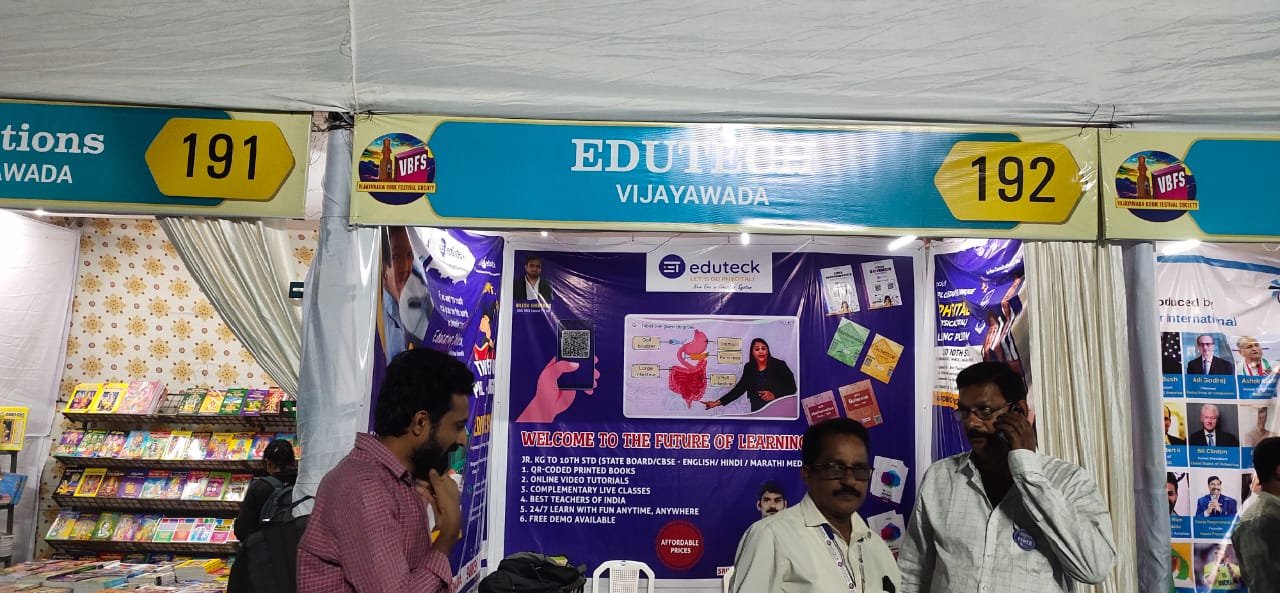 విజయవాడ ఇగ్మ్ స్టేడియం లో విజయవాడ బుక్ ఫెస్టివల్ 2026 జనవరి 2 వ తేదీ రాత్రి 7.45 నిమిషాలకు పుణె కు చెందిన కార్పొరేట్ విద్యా గ్రంథాల ప్రచురణ సంస్థ EDUTEK వారిచే భారీ డిజిటల్ గీతా గ్రంథం సుబ్బారావు గారి ద్వారా ఆవిష్కరణ, CBSE, NCERT సిలబస్లా గ్రంథాల స్టాల్ ప్రారంభోత్సవం.